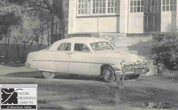 The picture below is in the driveway of 199 Boulevard. A former Mountain Lakes resident has said he's pretty sure this is a 1908 Packard Model 30. It's tough to say without a doubt as the photo is a bit blurry. But based on the front fenders, the rear tail lamp, the roof covering, windscreen and the outline of the drivers door area, he's 98% sure that is what it is.