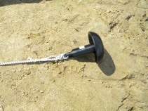 Mushroom anchor. 8 pounds, Bass Pro Shops part # 38-510-364-00. Note attached shock cord.
