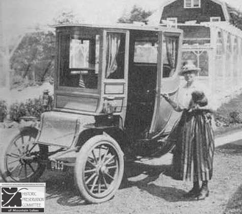 The lady is the wife of Maj. Clarence W. Smith. On the back of the original photo it says Col., so they may have promoted him before they sent him to France (WW I). It is not known whether he came back, or indeed whether he went at all. Mountain Lakes has no record of him after 1915. Col. And Mrs. Smith lived at 30 Dartmouth Road. Their Telephone Number was 319.